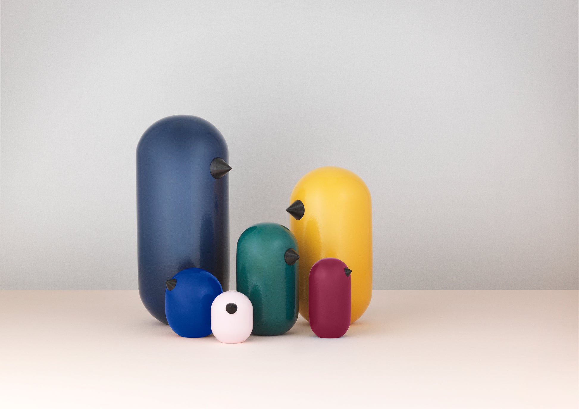 Little Bird is turned from solid oak or walnut and is lacquered or painted.