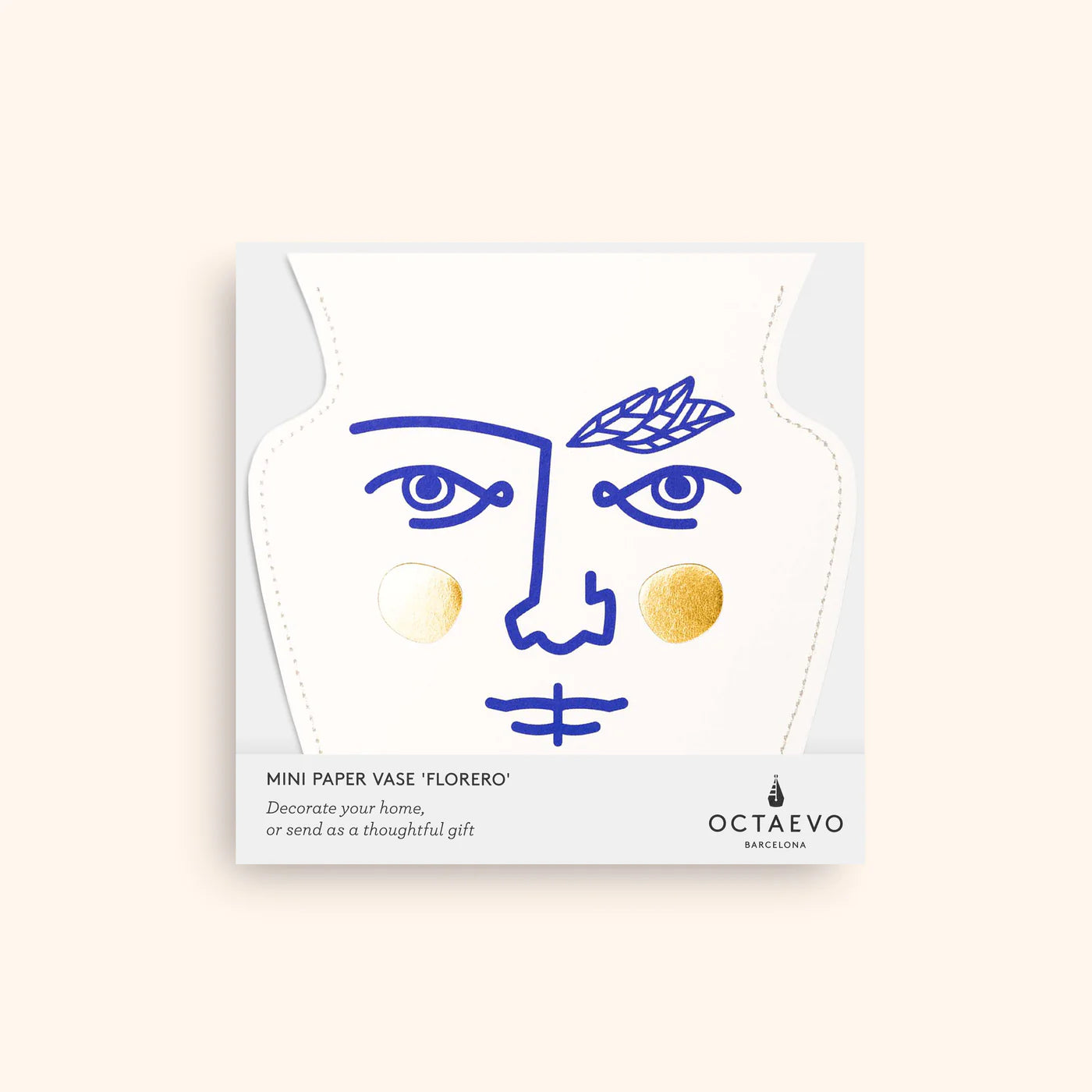 This handcrafted paper flower vase also doubles as a greeting card! Send it to someone special and they will feel like taking a trip around the Mediterranean. The card is ruled and includes metallic gold foil that reads: A little note. Made of special waterproof paper that is embellished with laminate and sewn by hand, the vases are a tribute to the ancient and sophisticated art of ceramics. Use these eye-catching vases to adorn your desk or dining table, or as a thoughtful and original gift. Arrange your favourite flowers in the vase, brighten up your favourite spot, and let your imagination bloom! The Janus vase, which features Octaevo's signature print of the Roman god of the past and the future, features gold foil stamping. Each vase also comes with instructions on how to best use the paper vase. As the vase is made of waterproof paper, should the paper get wet, simply let it dry. Established in 2013, Octaevo is a Mediterranean inspired product design brand based in Barcelona. With a commitment to celebrating Mediterranean heritage and a mission to tell enchanting stories, the brand produces extraordinary objects for the desk and home.