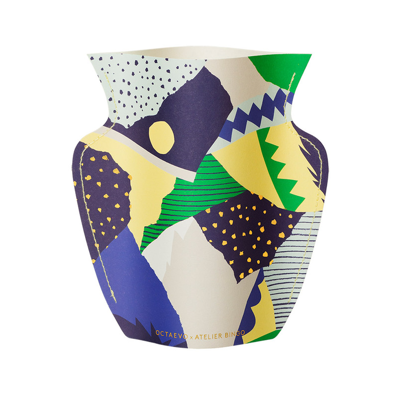 Drawing inspiration from Italian volcanoes, Octaevo commissioned renowned French illustration studio Atelier Bingo to design an exclusive series of energetic prints. The outcome is a dynamic set of colourful paper vases, subtlety referencing the relationship between humanity and nature. Made of special waterproof paper that is embellished with laminate and sewn by hand, the vases are a tribute to the ancient and sophisticated art of ceramics. Use these eye-catching vases to adorn your desk or dining table, or as a thoughtful and original gift. Arrange your favourite flowers in the vase, brighten up your favourite spot, and let your imagination bloom! This handcrafted paper flower vase also doubles as a greeting card! Each vase also comes with instructions on how to best use the paper vase. As the vase is made of waterproof paper, should the paper get wet, simply let it dry. Established in 2013, Octaevo is a Mediterranean inspired product design brand based in Barcelona. With a commitment to celebrating Mediterranean heritage and a mission to tell enchanting stories, the brand produces extraordinary objects for the desk and home.