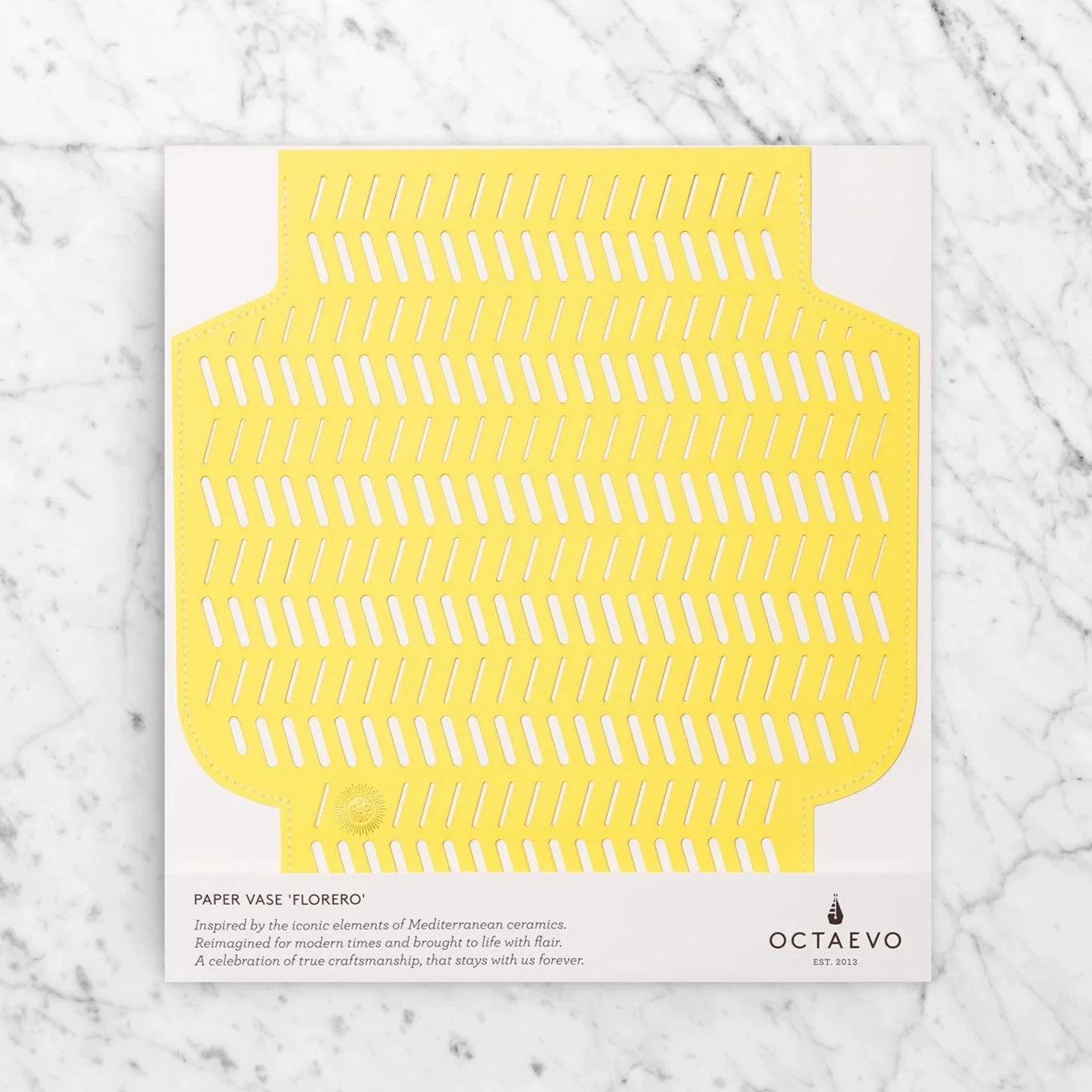 This handcrafted large paper flower vase from Octaevo will take you on a trip around the Mediterranean. Made of special waterproof paper that is embellished with laminate and sewn by hand, the vases are a tribute to the ancient and sophisticated art of ceramics. Use these eye-catching vases to adorn your desk or dining table, or as a thoughtful and original gift. Arrange your favourite flowers in the vase, brighten up your favourite spot, and let your imagination bloom! The Bazaar vase, which in inspired by the eye-catching and pure colours of powdered pigments, features gold foil stamping. Each vase also comes with instructions on how to best use the paper vase. As the vase is made of waterproof paper, should the paper get wet, simply let it dry. Established in 2013, Octaevo is a Mediterranean inspired product design brand based in Barcelona. With a commitment to celebrating Mediterranean heritage and a mission to tell enchanting stories, the brand produces extraordinary objects for the desk and home.