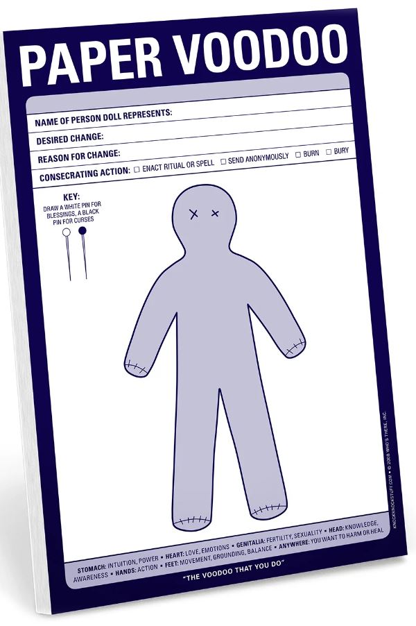 Most of us have far more than one individual in our lives who requires a blessing or a hex-hence the practicality of a multiple-sheet pad! Doodle and annotate your intentions, then watch your wishes come true. A powerful gift for your friends Stick it to someone-white pins for good, black for evil 6 x 9 inches, 60 sheets