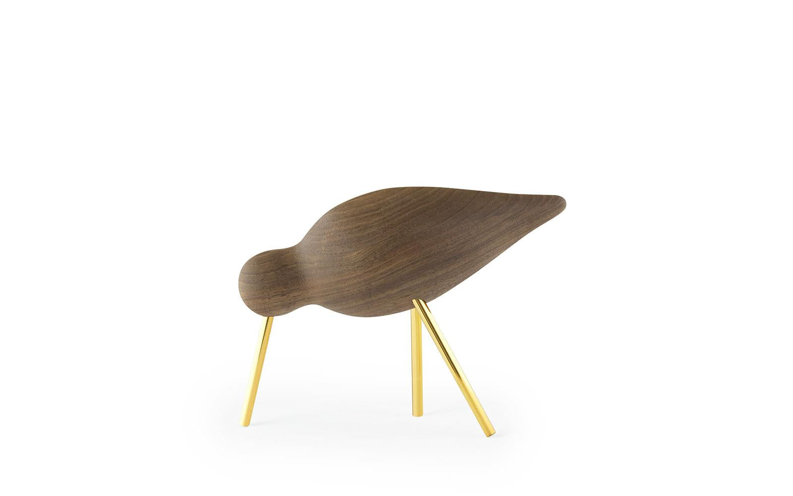 Shorebird is turned from solid oak, ash or walnut. Legs in lacquered, black-plated or brass-plated steel.
